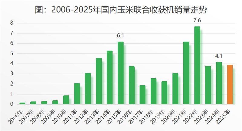 根据农机购置补贴系统数据推断,2025年玉米收获机行业销量将同比下滑20%—25%,实现3.5万台左右的销量,与2016年持平,相比2022年高峰期是真正的腰斩。