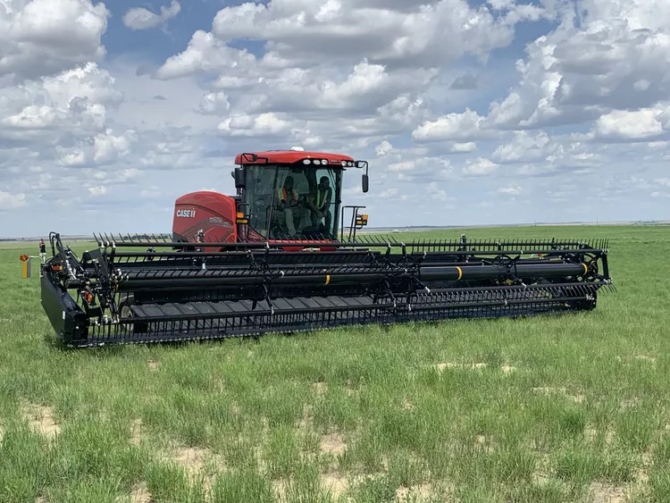 Case IH WD5系列自走式割晒机现在与Honey Bee Manufacturing的更高容量的铺布机头兼容。