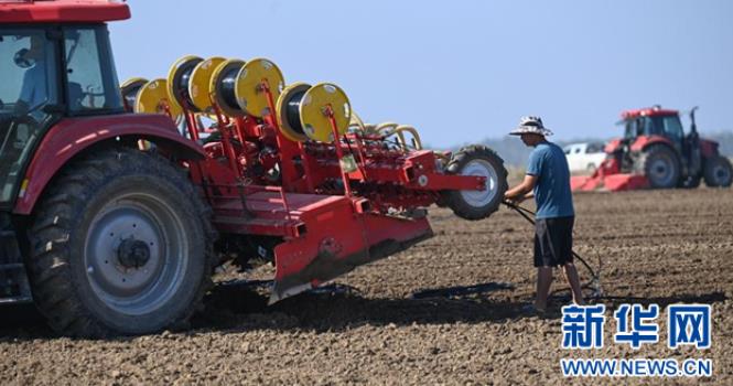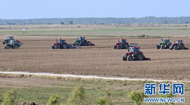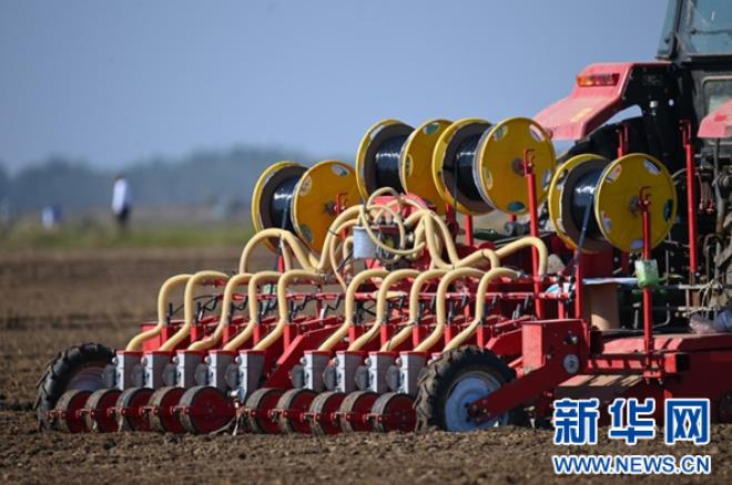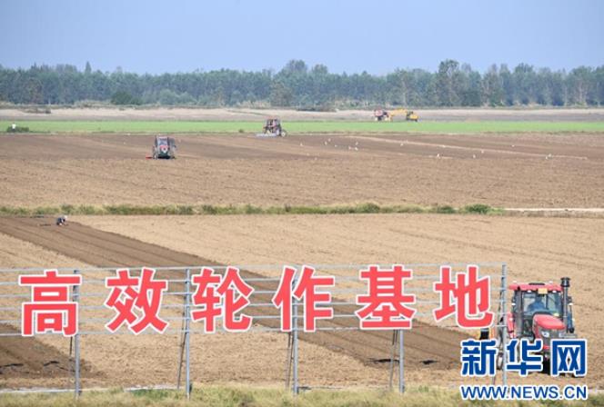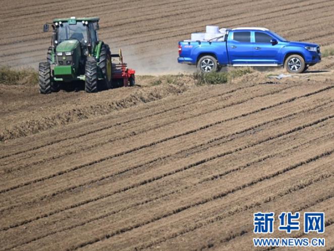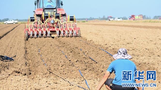 9月15日,在湖北省潜江市竹根滩镇外滩潜江大豆-乐事马铃薯种植基地,20台大型农机抢抓晴好天气进行秋种作业,田间地头一派繁忙的景象。