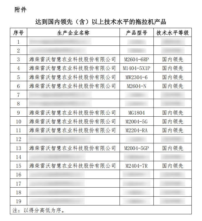 近日,农业农村部农机化总站发布农业轮式拖拉机先进性评价结果。潍柴雷沃智慧农业共有19个产品被认定达到国内领先(含以上)技术水平,被认定数量超过总认定数量的一半,高居行业榜首。其中,潍柴雷沃P2404-7V(G4)拖拉机被评为达到国际先进技术水平。