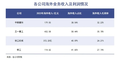 收集和整理相关的数据,我们可以看到国内工程机械行业的国际化水平非常高,平均而言,一半的收入来自海外市场。以三一重工为例,其海外收入占比达到61%,这一数据凸显了中国工程机械企业在全球市场的竞争力。