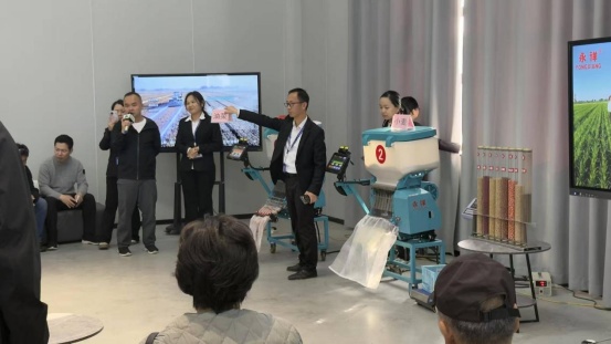 核心产品与技术成果展示环节成为交流焦点。工作人员重点介绍了多款明星产品:可免除育秧插秧环节、大幅节省人工成本的水田水稻直播机,能一次性完成旋耕、播种等多道工序的旋耕施肥机,以及适配30多种作物的智能播种机,其中高速气吹播种机因高效适配多作物种植需求备受关注。针对考察团关心的技术优势,填补国内空白的“第三代电驱智能精量播种施肥控制系统”,6项核心专利构建起坚实技术壁垒,更让永祥成为全球仅有的三家将雷达测速技术应用于播种机行业的企业之一。