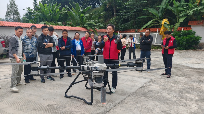 广西乡村科技特派员金城江区产业服务团联合河池市林业科学研究院,近日在五圩镇成功举办农用植保无人机专项培训。本次培训由科技特派员蓝锐担任核心讲师,通过“理论讲解+现场实操+技能考核”三位一体课程体系,创新研发“地形匹配飞行吊运法”,实现丘陵地无人机吊运的安全操作指南,大大降安全事故。