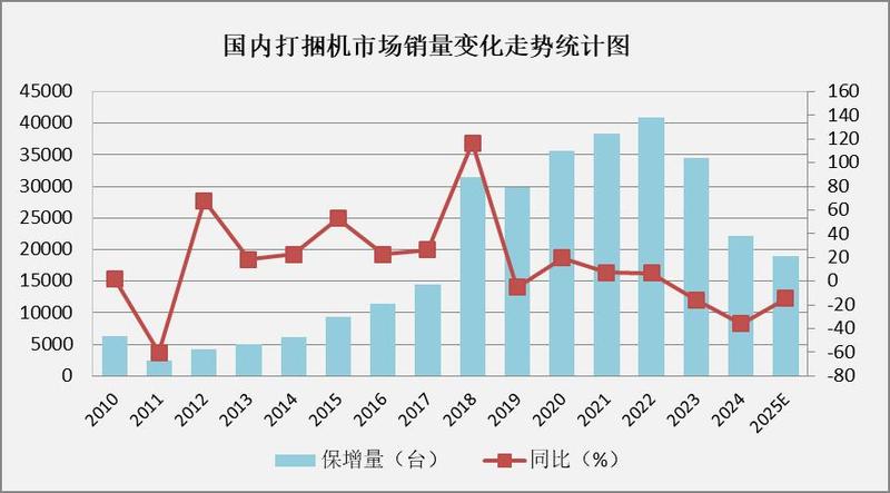 从市场走势看,经过2023、2024连续两年的市场销量下滑,形成了销量洼地,在畜牧产业回温、粮食价格趋稳的大形势下,2025年国内打捆机市场有望降幅回调。预计,2026年乃至今后几年内,打捆机产品整体市场销量趋稳运行,大型化趋势会愈加明显,在价值创造上不会减少。