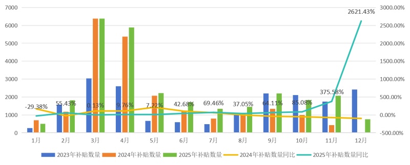 从月度数据看,每年的3月至5月(春耕备耕期)和8月至10月(秋收整地期)是销售与补贴发放的两个高峰。值得注意的是,春季高峰的启动时间有前移趋势,且峰值更为突出。这背后是农户为抢抓农时,提前购置和预订新机具的意愿增强,也反映了供应链和补贴申领流程的日益顺畅。