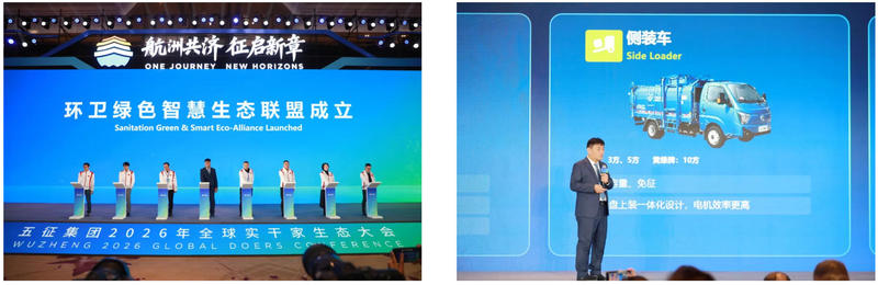 集团副总经理刘华忠发布了《环卫绿色生态解决方案》,直击环卫行业新能源化、智能化转型浪潮,推出覆盖垃圾收运、道路保洁等全场景的新能源装备矩阵,并依托底盘上装一体化设计与智能技术,提供高效、低碳的整体解决方案。同时成立的“环卫绿色智慧生态联盟”,联合产业各方共建协同共赢的生态圈,助力城乡人居环境持续提升。