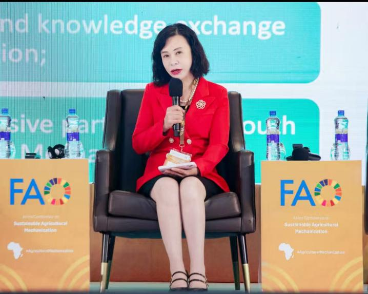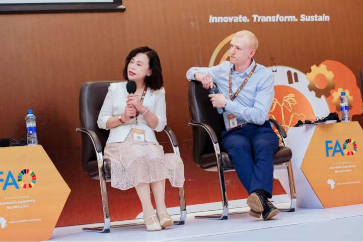 杨敏丽教授在“加强伙伴关系以加快非洲的机械化进程”平行会议作了题为“Examples of International Partnerships in Sustainable Agricultural Mechanization”的报告。根据联合国粮食及农业组织(FAO)数据,当前,全球饥饿和粮食不安全形势十分严重,30多亿人仍无法负担健康饮食,迫切需要推动向更高效、更包容、更有韧性和更可持续的农业粮食系统转型。“大国小农”是中国的基本国情,小农户占农业经营主体的 98%以上;中国有 2.3 亿农户,平均每户仅拥有 0.52公顷耕地,拥有2公顷以下耕地的小农户占比为 95.8%;中国从事农业生产和经营的人员总数为 3.14 亿,其中近 1.5 亿为女性,占比 48%。如何推动小农户和妇女发展农业生产,是中国农业现代化进程中必须考虑的一个问题。在这一背景下,中国于2020年实现了全面脱贫,这是人类发展史上的一项奇迹,农业机械化在这过程中发挥了重要作用。杨敏丽介绍了中国农业机械化发展情况,特别是数字化技术与大数据系统平台对促进农业机械化发展、提高生产效率、保障粮食安全所发挥的积极作用。中国的经验、模式可为全球南方国家发展提供参考与借鉴。杨敏丽还介绍了中国农业大学与联合国粮食及农业组织(FAO)、联合国可持续农业机械化中心(CSAM)等联合国机构,国际组织,以及巴西、阿根廷、泰国、老挝、缅甸等国家的国际合作模式及效果,并提出未来与非洲合作的前景展望。以亲身经历,回答了主持人提出的“什么样的伙伴关系能够在非洲加速农业机械化进程中发挥积极作用?与以往的方法相比,又有哪些方面需要做出不同的调整?”“在非洲,如何通过合作机制使研究机构、企业及服务提供商更好地紧密联系起来,从而使创新能够满足实际需求,而非仅仅停留在研究导向的模式上?”等问题,引起现场嘉宾极大反响。