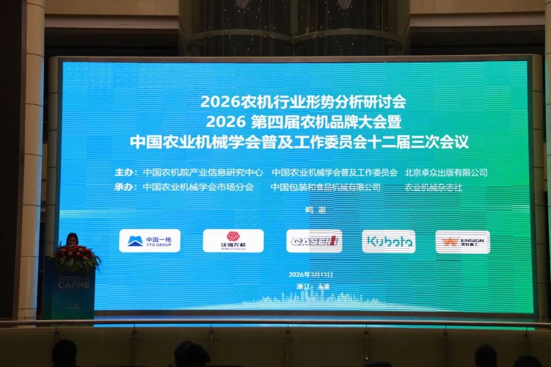 3月13日,2026农机行业形势分析研讨会,第四届农机品牌大会在浙江永康举行。本次大会由中国农机院产业信息研究中心、中国农业机械学会普及工作委员会和北京卓众出版有限公司共同主办,中国农业机械学会市场分会、中国包装和食品机械有限公司和农业机械杂志社共同承办,聚焦丘陵山区机械化、农机服务模式创新、大数据与AI智能体应用等行业热点议题,推动农机品牌建设与营销模式转型,助力行业高质量发展。活动得到中国一拖、沃得农机、凯斯纽荷兰、久保田和英轩重工的大力支持。同期,还举办了由农业机械杂志社主办的第18届农机用户满意品牌发布及颁奖活动。