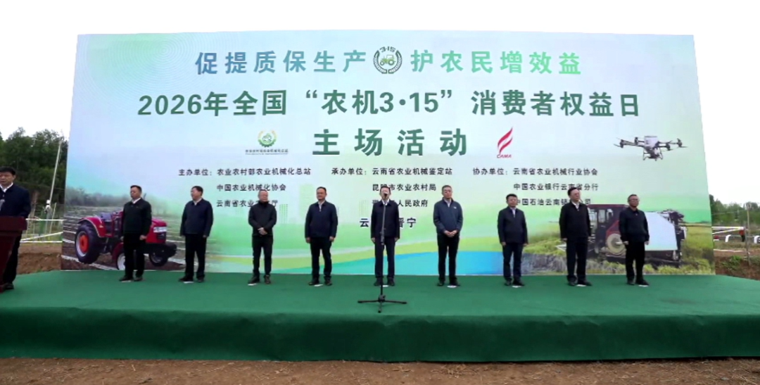 3月15日,由农业农村部农业机械化总站、中国农业机械化协会、云南省农业农村厅联合主办的2026年全国“农机3·15”消费者权益日主场活动在云南省昆明市晋宁区举办。本次活动主题为“促提质保生产 护农民增效益”。农业农村部农业机械化总站站长王松、云南省农业农村厅厅长李琰、昆明市副市长许高红、昆明市晋宁区区长马龙、中石油云南销售公司总经理杨声武、中国农业银行云南省分行副行长卢伟出席活动并发言,中国农业机械化协会监事长刘敏、云南省农业农村厅副厅长蒋兴明(正厅长级)、云南省公安厅环食药侦总队副总队长赵青云等参加了活动。