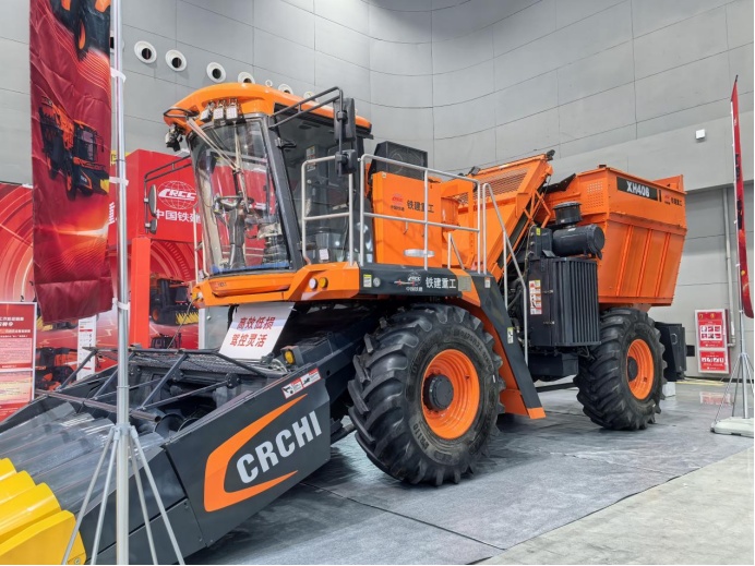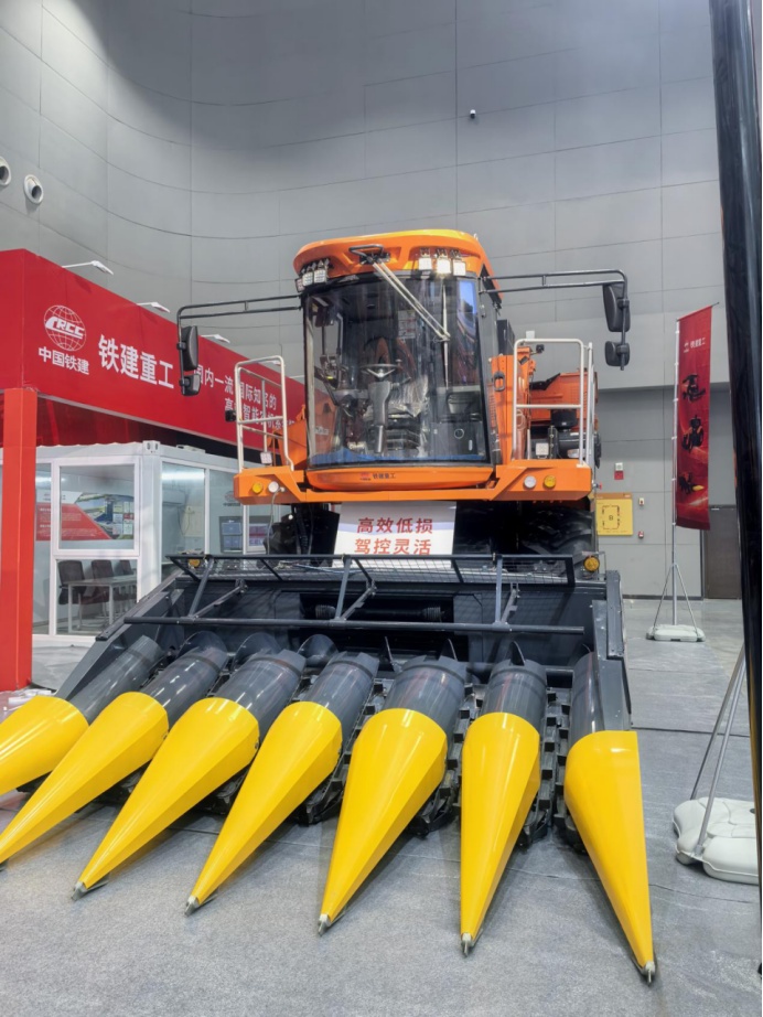 本次展会聚焦绿色化、智能化发展方向,铁建重工新疆公司也将这一理念融入产品研发。现场展出的谷物联合收割机设计实用、功能全面,可实现一机多用,快速更换割台便能适配玉米、小麦、水稻、大豆等多种主粮作物收割作业。机型搭载自研高效脱粒滚筒,作业过程顺畅不易堵塞,籽粒破碎率低,收割效率更高;同时支持选装重型三角履带,可大幅提升在低洼湿地与黏重地块的通过性和适应性,全方位适配不同产区田间工况,以可靠装备助力粮食颗粒归仓,贴合各地规模化种植的实际生产需求。