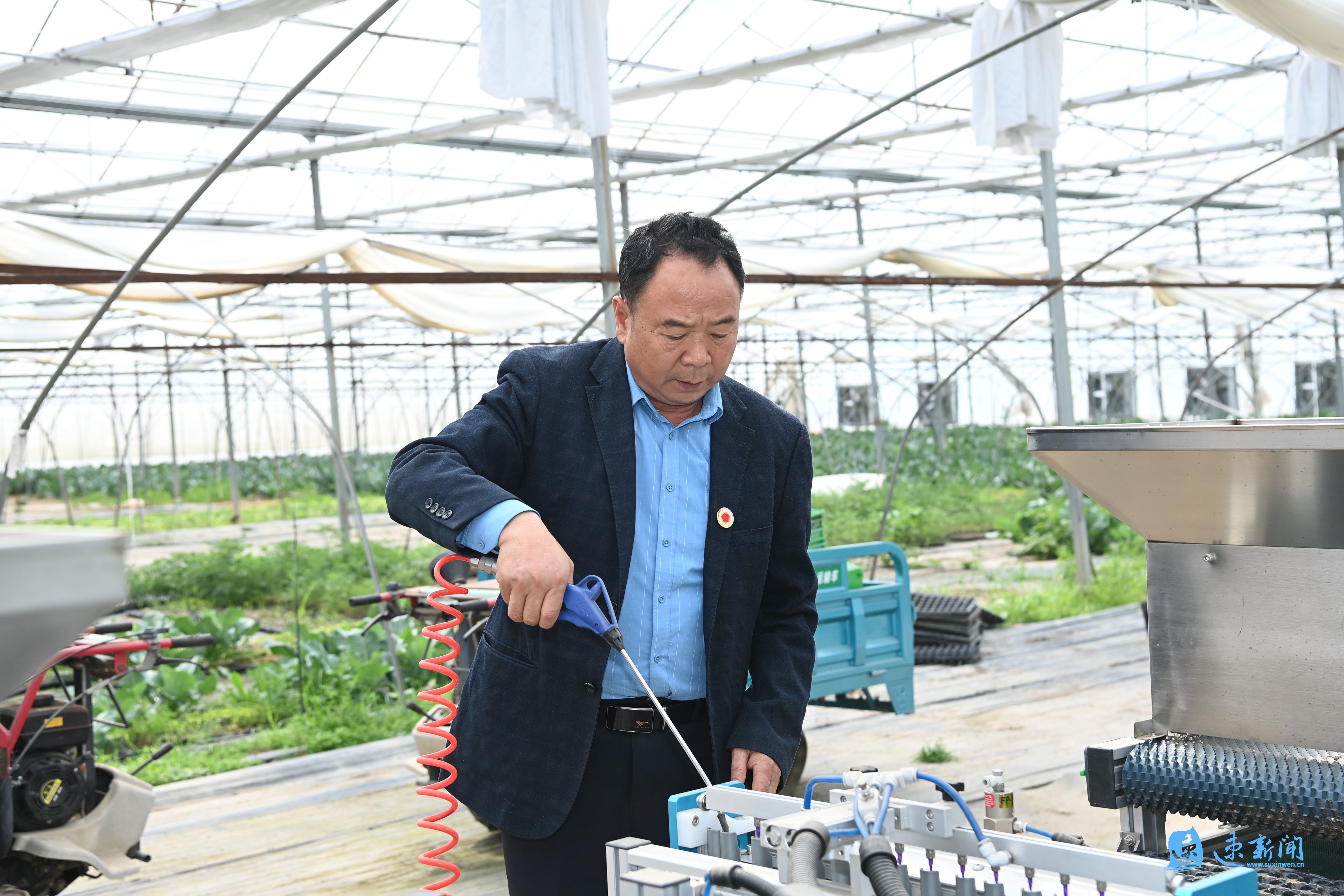 周相民站在连片大棚前,身后是正在学习使用播种机器人的农户。“一家富不算富,让种地变成技术活,年轻人愿意回来,农村才有盼头。”周相民说。