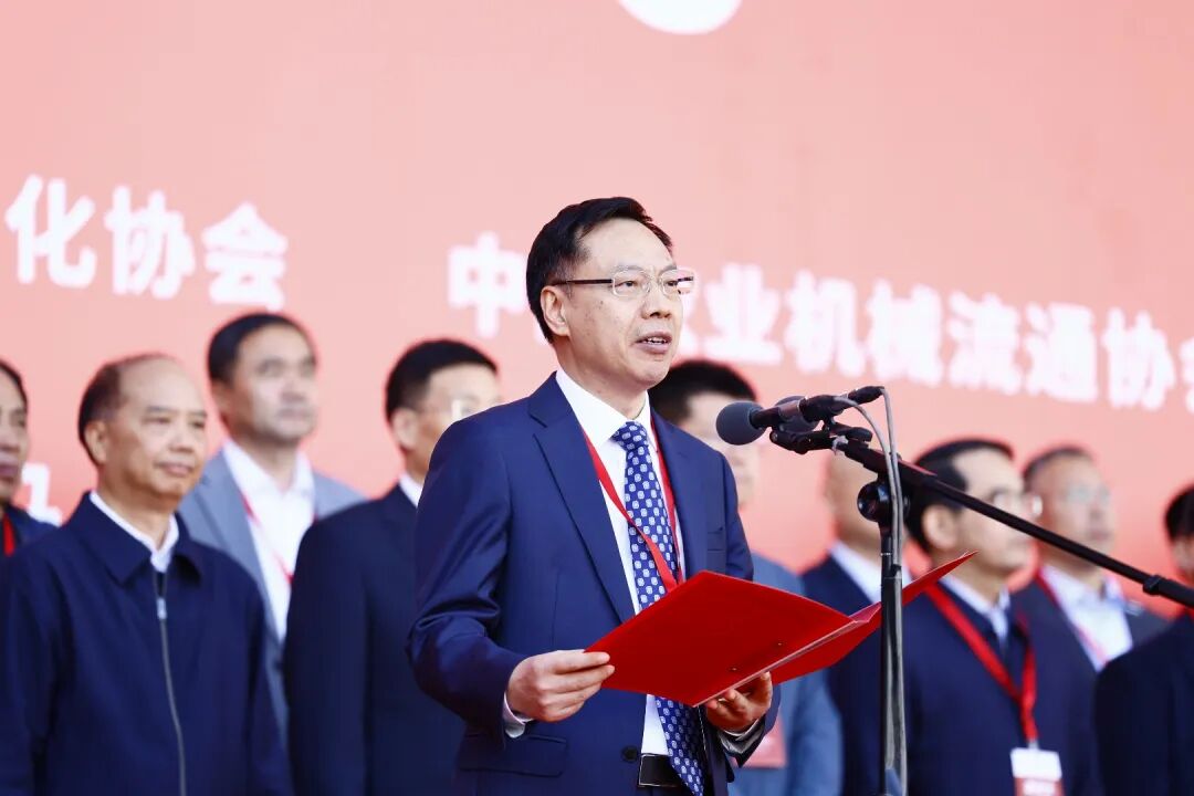 赵剡水代表主办单位致辞。他表示,全国农机展作为我国春季最具规模、最具影响力的农机行业盛会,多年来始终坚守“服务行业、赋能农业”的宗旨,见证了我国农机产业从“量的积累”向“质的飞跃”的转变。本届展会展位预定火爆,充分彰显了行业的旺盛活力与展会的强大吸引力。希望通过本次展会,推动产学研用深度融合,促进农机技术成果转化,助力破解丘陵山区农机化发展短板,推动我国农机产业实现高质量发展,为保障国家粮食安全、推进乡村全面振兴提供坚实支撑。