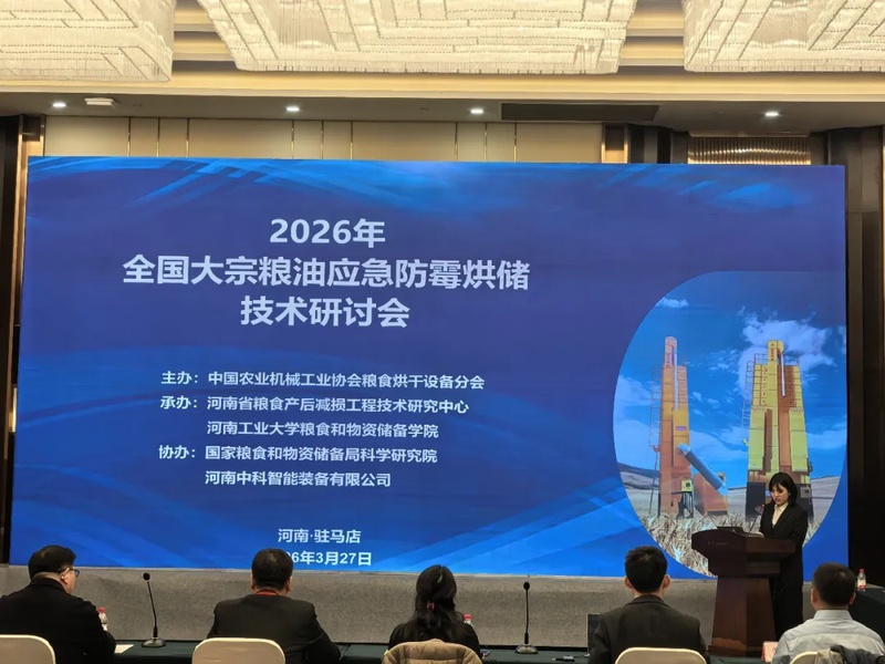 2026年3月27日,全国大宗粮油应急防霉烘储技术研讨会在驻马店顺利举办。本次会议汇聚行业主管部门、科研院所、骨干企业等众多参展单位代表,以粮食烘干应急保障、技术创新、装备升级与产业高质量发展为核心议题,共商应对极端天气、守护粮食安全的技术路径与实施方案,为应急减损、科技护粮凝聚合力。