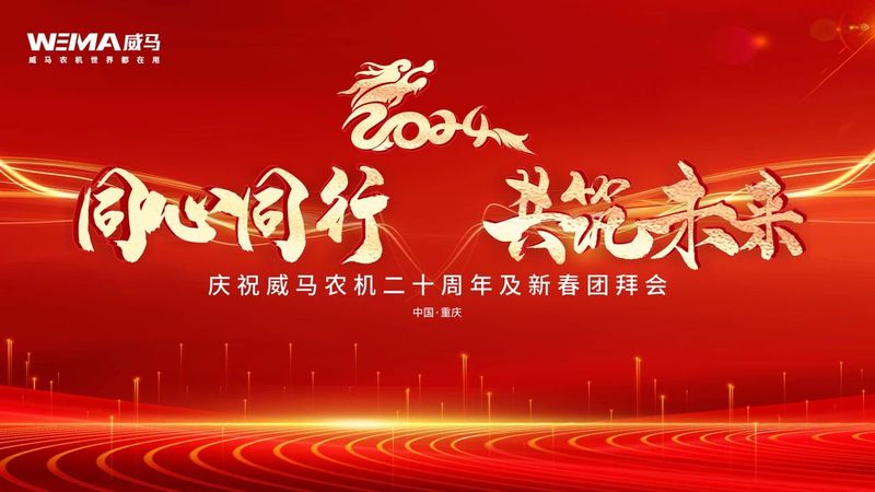 威马二十周年庆典暨2024年新春团拜会于1月30日在威马农机厂区内举行。本次庆典活动以“同心同行 共筑未来”为主题,董事长严华先生携公司全体员工与特邀嘉宾相聚一堂,一同见证威马农机股份有限公司二十年踔厉风发的成果与喜悦。