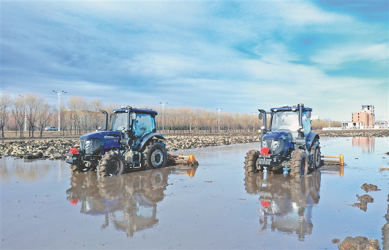 无人驾驶农机搅浆整地作业。徐宏宇摄