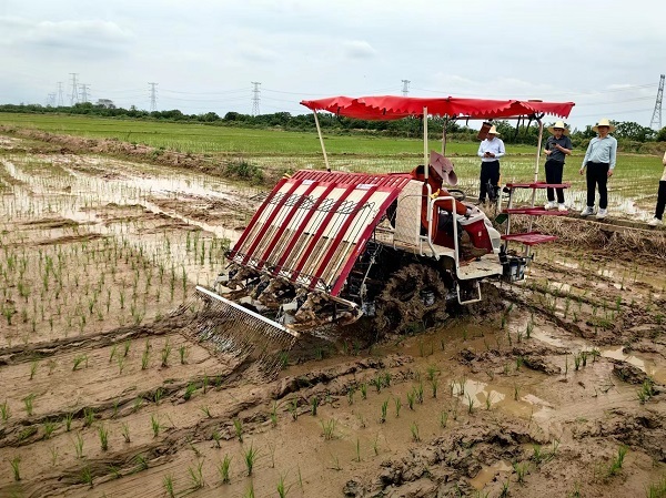 4月20日,为推进早稻杂草绿色防控、省力化机械化除草及探索水稻提单产机械措施,中国水稻研究所、国家水稻产业技术体系杂草防控岗、国家水稻产业技术体系南昌综合试验站、江西省农业科学院农业工程研究所、江西省农科院水稻所、南通省力机电科技有限责任公司、江西南昌大田农社在南昌县蒋巷镇联合组织早稻机插秧省力化机械化除草、水田开沟等水稻高产设备演示,中国水稻研究所插喷同步技术、省力科技公司3WL-6颗粒除草剂撒布机、小链式水稻除草机、3ZSG-6A自平衡水田除草机、HKG-1水田开沟机进行了现场作业。