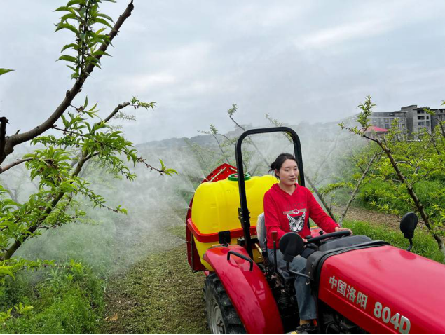 走进蟠桃园,只见喷洒机械从容地在果园间穿梭,工人驾驶着新购买的除草喷洒一体机进行管护作业。