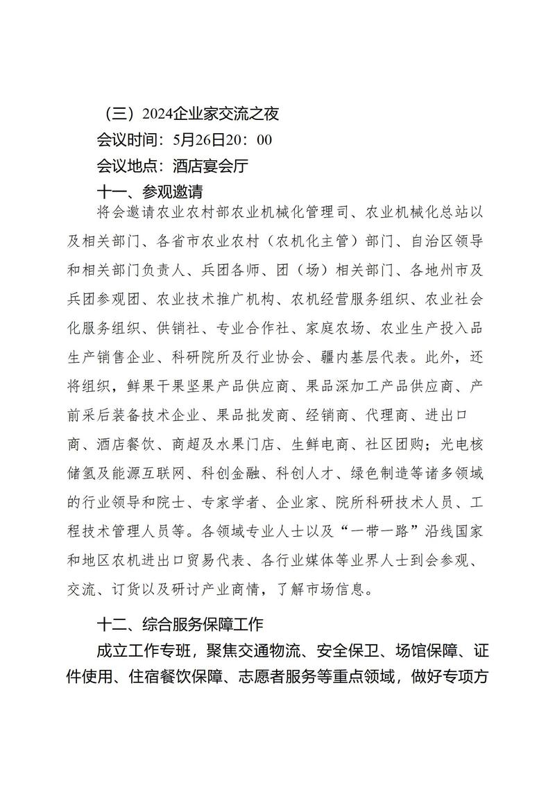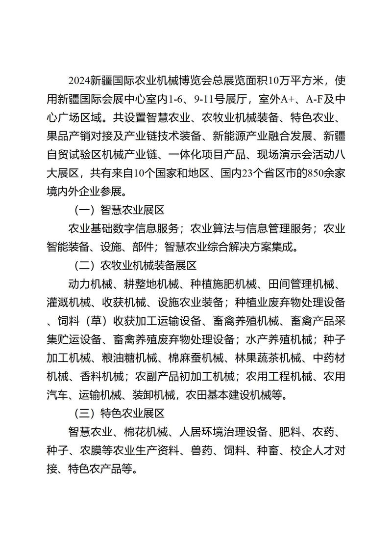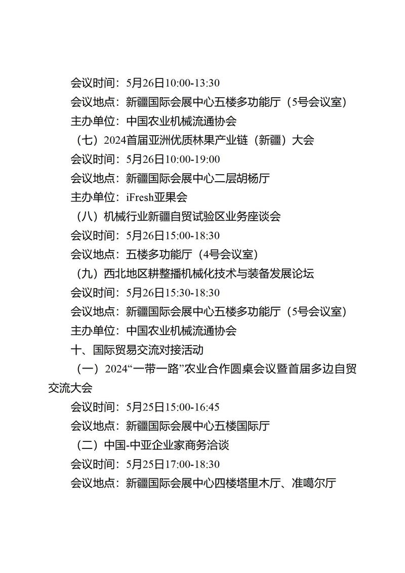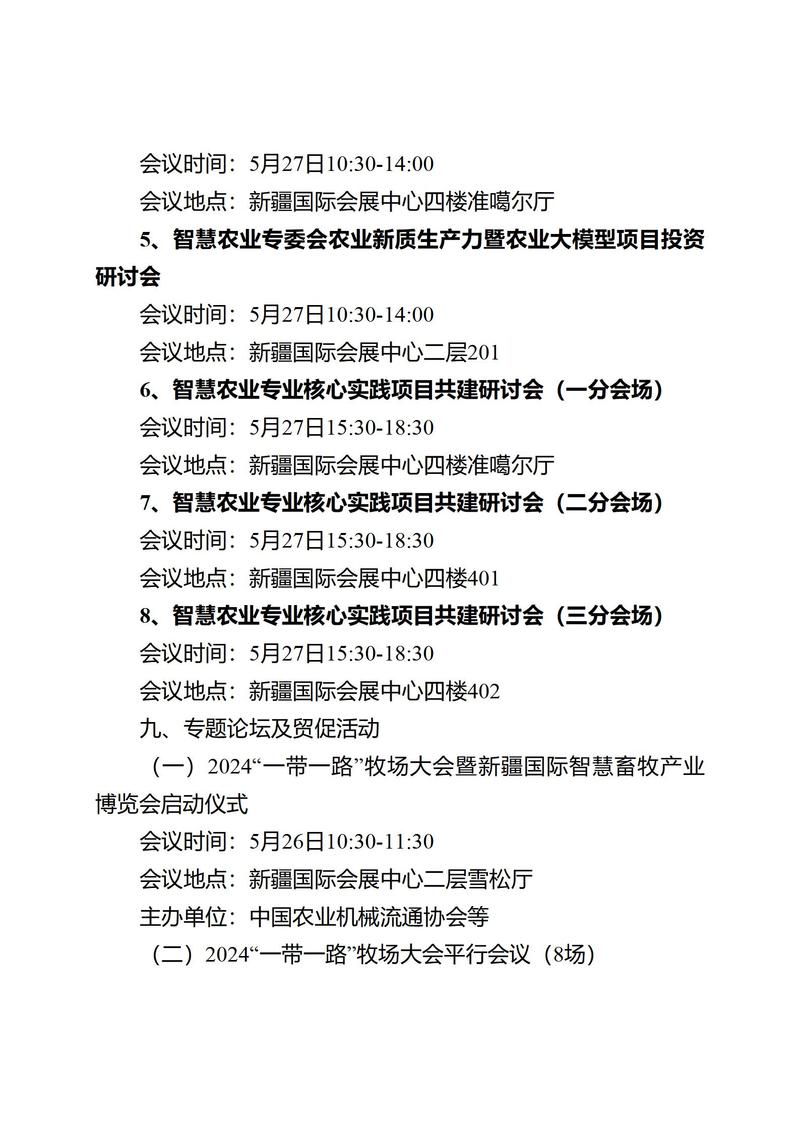 2024年新疆国际农业机械博览会及“一带一路”智慧农业大会将于5月23日至5月27日在乌鲁木齐举行。主题为“智慧农业·智能农机与农业现代化”,由多个机构主办,涵盖政府部门、行业协会及企业。展会将邀请国内外专家、企业家和政府代表,展示智能农机技术、农业现代化方案,并促进农业机械化国际贸易与合作。展会期间还将举办座谈会,讨论中国企业在中亚五国开展贸易、投资与合作项目。
