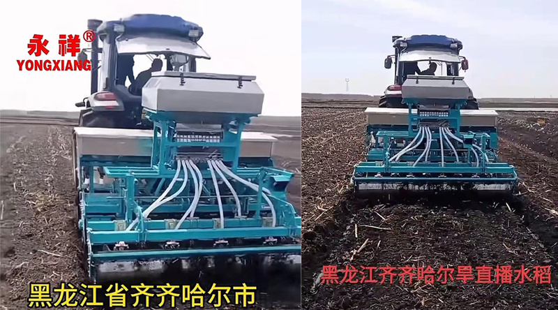 水稻旱播就是将种子直接播种到大田中,省去了清雪扣棚、筛土摆盘、育苗插秧、泡田打浆、机械插秧等诸多复杂繁重工序,水稻旱播作业步骤如下:整地—播种—镇压—封闭—打梗—上水施肥—后期管理。整个生育期6月初、7月10日前、8月初上三遍水,上水后根据苗情酌情施肥除草。使用永祥智能播种机旱播作业不但能大幅度降低生产成本投入,而且免去了腐殖土采集、搅浆平地对黑土地的持续破坏,免去泡田用水环节,保护生态环境,为水田实现黑土地保护开辟了新的途径。