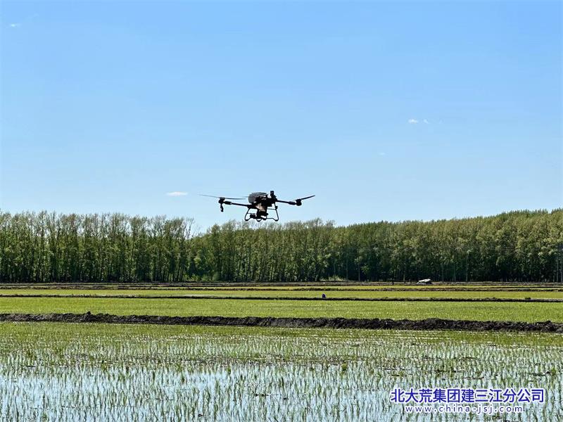 眼下正值水稻返青的关键时期,为确保水稻早返青、早分蘖,连日来,北大荒集团大兴农场有限公司抢抓晴好天气,科学指导种植户根据不同地块秧苗的长势,适时开展无人机追施返青肥作业,利用科技手段跑出水稻田间管理“加速度”。