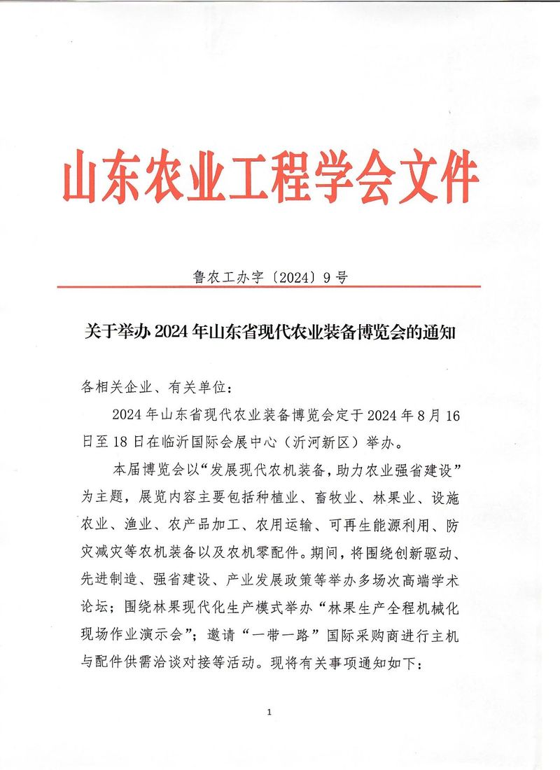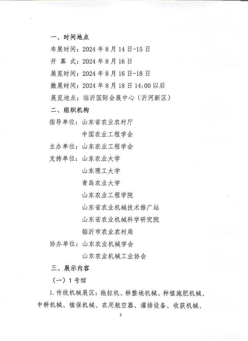 2024年山东省现代农业装备博览会定于2024年8月16日至18日在临沂国机会展中心举办。