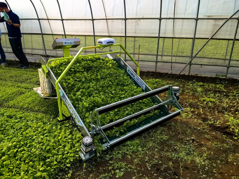据企业负责人介绍,两台机具均配置导航,可以提前规划好路径,在叶菜播种、采收过程中直线行走、自动掉头、自动对行,劳动强度低,作业效率高,可至少抵15-20个人工;此外,机具采用48V磷酸铁锂电池,电机驱动,无噪音无污染,绿色环保,机具已在江苏、上海、福建等省份实现商业化应用,成功实现了蔬菜生产从传统的“机械化”模式向“智能化”转变;满足机器换人的需求!