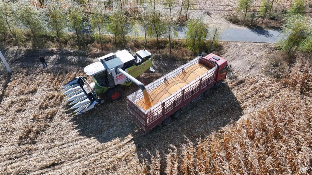 10月29日,在内蒙古通辽市开鲁县田间地头,随处可见农业生产全程机械化收获的火热场景。在开鲁县小街基镇福林村成片的玉米地里,一台装有北斗导航的玉米籽粒直收机正来回穿梭作业,收割、脱粒、秸秆粉碎一气呵成,转眼工夫,一块玉米地就收割完成。当玉米满仓时,机器上的管道便会将玉米输送到路旁的货车上,整个过程省时又省力。