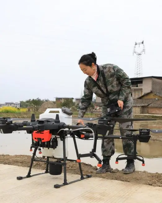 蒋丽英在检查无人机。受访者供图