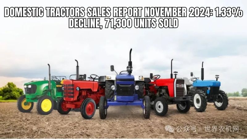 2024 年 11 月国内拖拉机销量下降 1.33%,销量为 71,300 台,而 2023 年 11 月为 72,259 台。