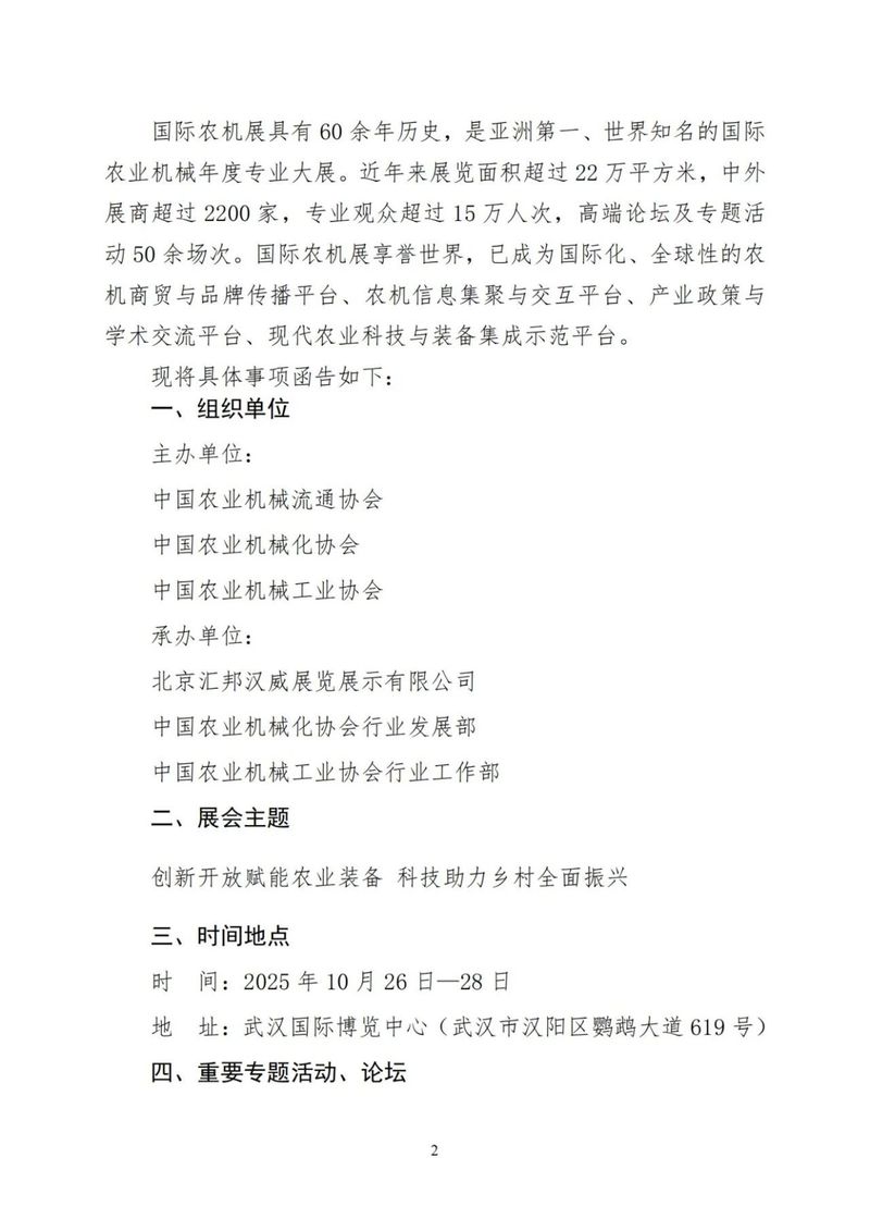 关于邀请参加2025中国国际农业机械展览会的函