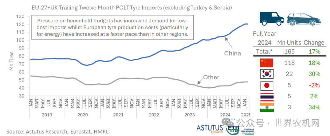 欧洲家庭预算的压缩催生了低价进口轮胎的上涨,因为欧盟的生产成本远高于其他地区。