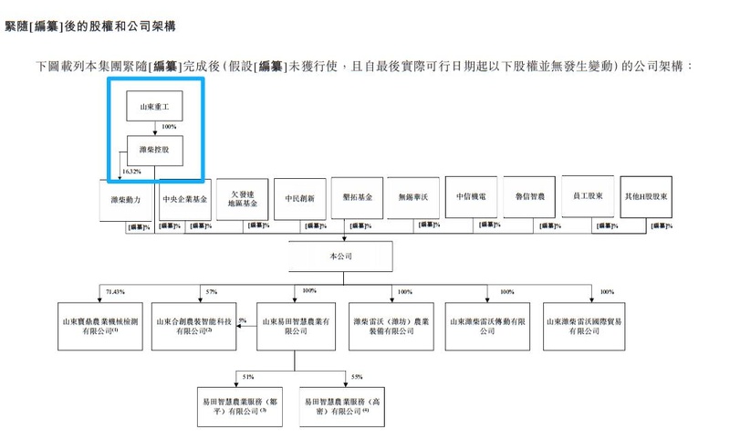时间要先倒回到 2020 年,潍柴动力(02338.HK/000338.SZ)——这家以发动机为核心、横跨动力系统与新能源的制造业巨头,正悄悄布局一场农机装备领域的资本大局。其母公司潍柴控股集团(简称潍柴集团),作为山东重工集 团有限公司的全资子公司,扮演了关键角色。潍柴集团虽仅持有潍柴动力 16.32% 的股权,却是本次资本局的重要战略谋划与推手,旨在打通从“传统制造”变身“智能农业”的产业链条新故事。