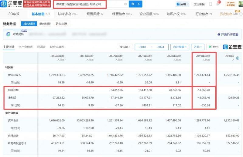 潍柴集团创始人谭旭光的愿景很明确:让潍柴雷沃独立上市,打造农业装备领域的资本旗舰。但这条路波折重重——2023 年 11 月,潍柴雷沃冲击创业板 IPO,却在两轮问询后主动撤退;如今转战港交所,老问题依旧如影随形。这场资本之旅,不仅关乎商业整合,更是一场关于收购资产暴富的故事。而翻看雷沃重工股份有限公司被收购前的2019年,公司当年利润总额为-5.4亿。