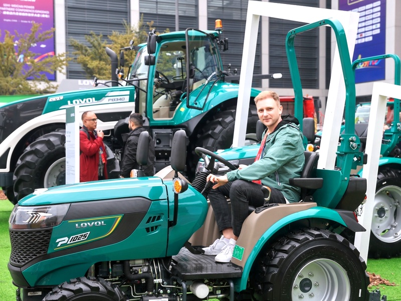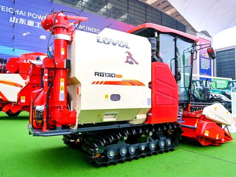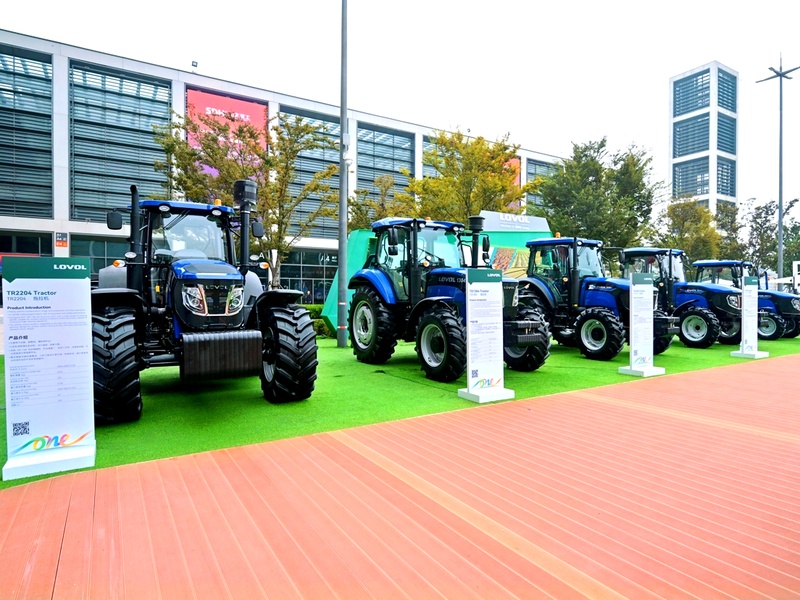在产品展示区,从高大威猛的雷沃P8340 CVT拖拉机到小巧灵活的雷沃F4000果园机,由15台拖拉机、4台收获机、3台特种机械及3台农机具组成的强大产品阵容,构筑起覆盖覆盖“耕、种、管、收”成套农业装备解决方案。