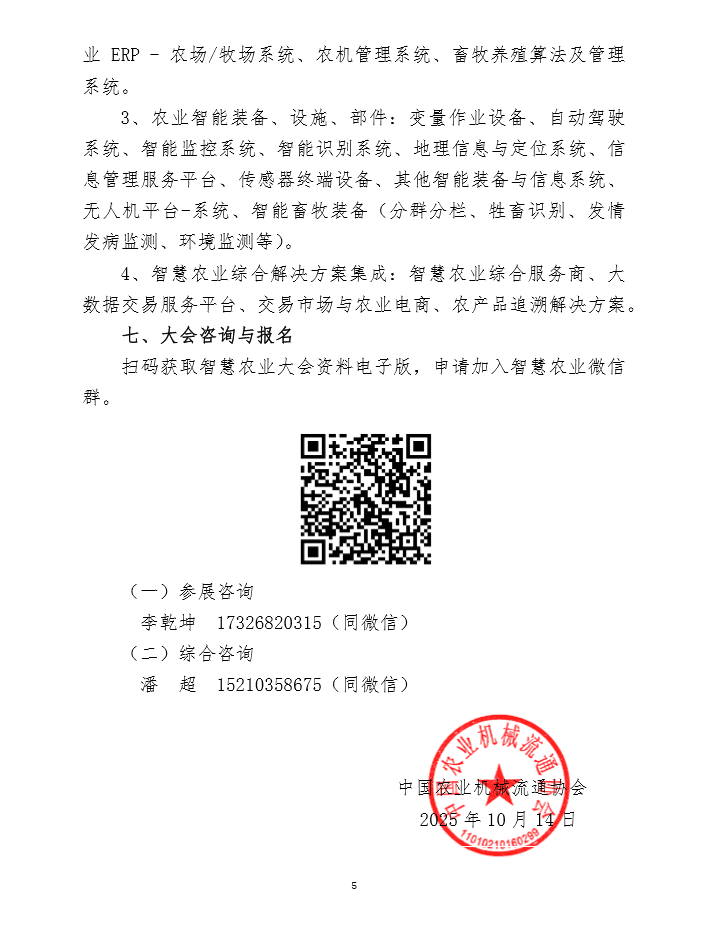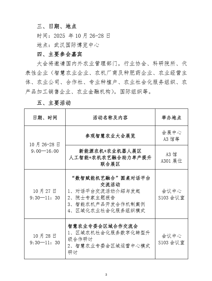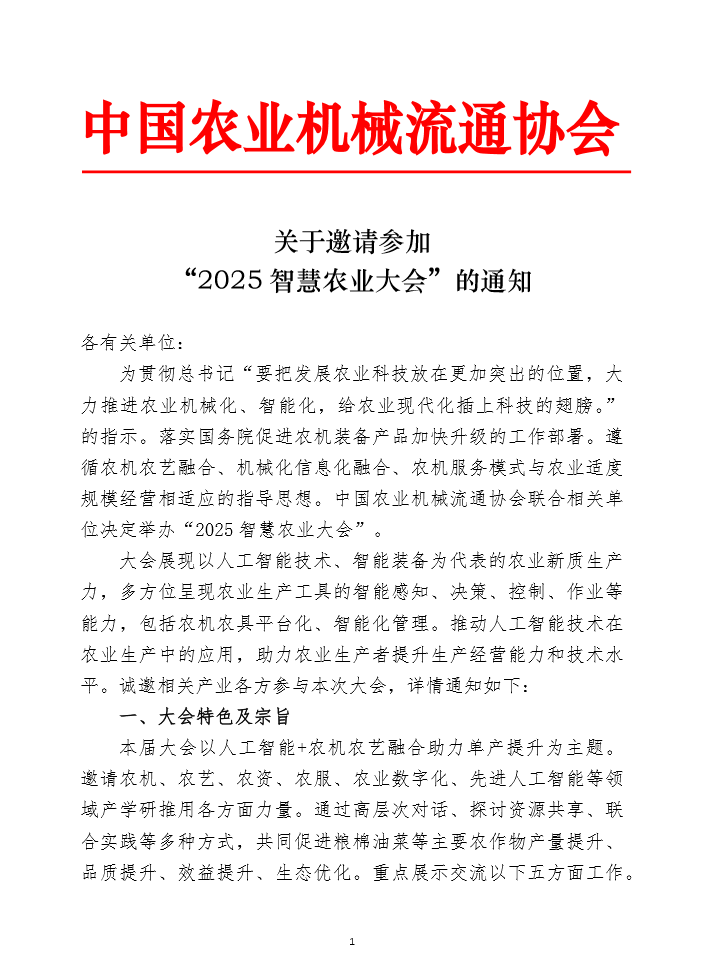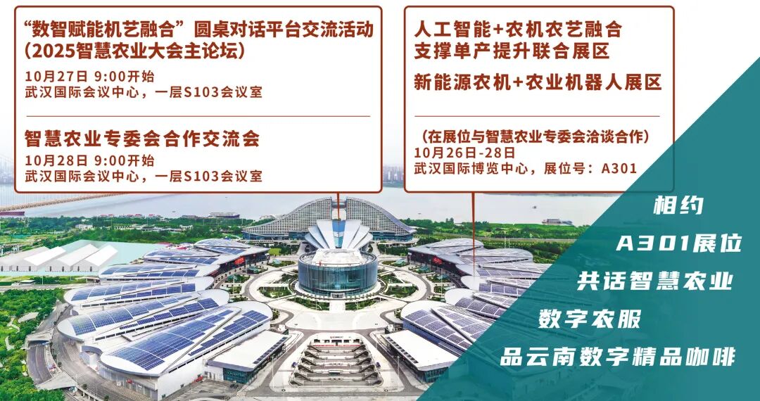 中国农业机械流通协会联合相关单位,将于2025年10月26日-28日在武汉国际博览中心举办“2025智慧农业大会”。