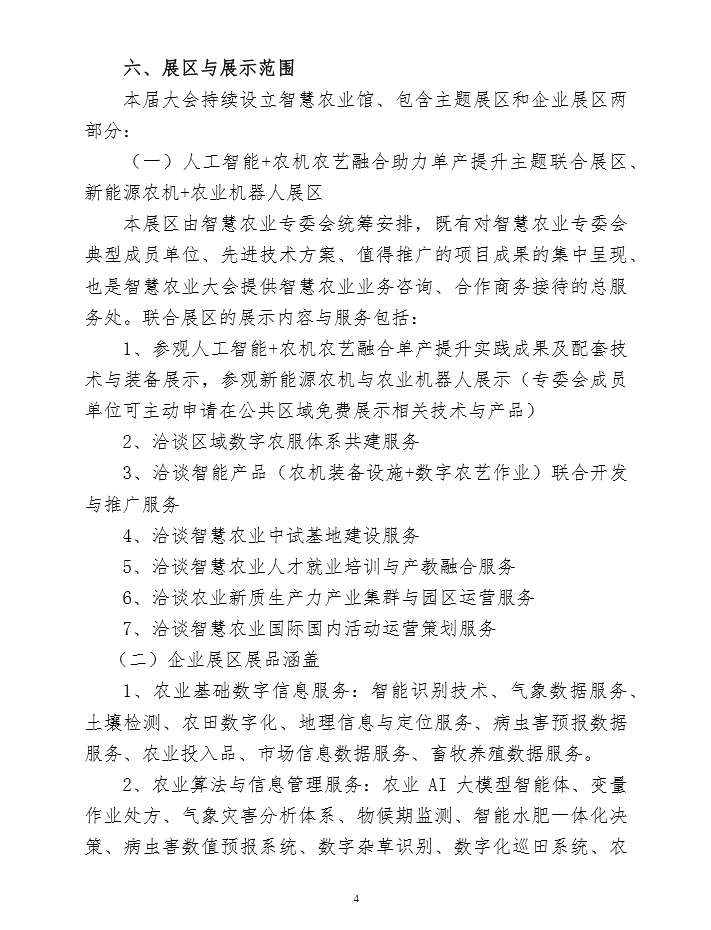 本届大会持续设立智慧农业馆,包含主题展区和企业展区两部分;还将举办多场报告、交流、研讨等活动。大会展现以人工智能技术、智能装备为代表的农业新质生产力,多方位呈现农业生产工具的智能感知、决策、控制、作业等能力,包括农机农具平台化、智能化管理。推动人工智能技术在农业生产中的应用,助力农业生产者提升生产经营能力和技术水平。