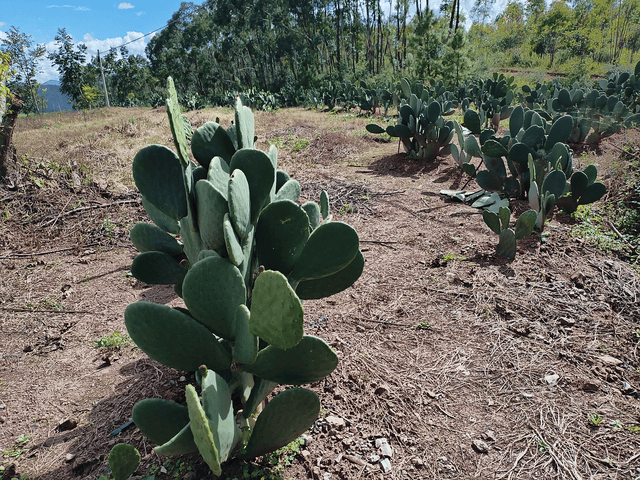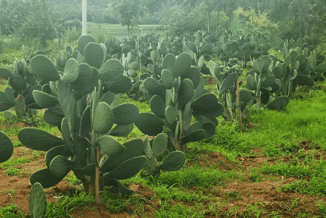 近日,笔者深入走访了位于楚雄市子午镇罗只碑村委会王家小组的仙掌阁农民种植专业合作社种植基地。经调研得知,基地负责人何维疆通过招商引资途径,于该小组祭龙冲的羊肝石荒坡,以人工开挖的方式推进可食用仙人掌的种植工作。当下,这片仙人掌已迈入盛果期。