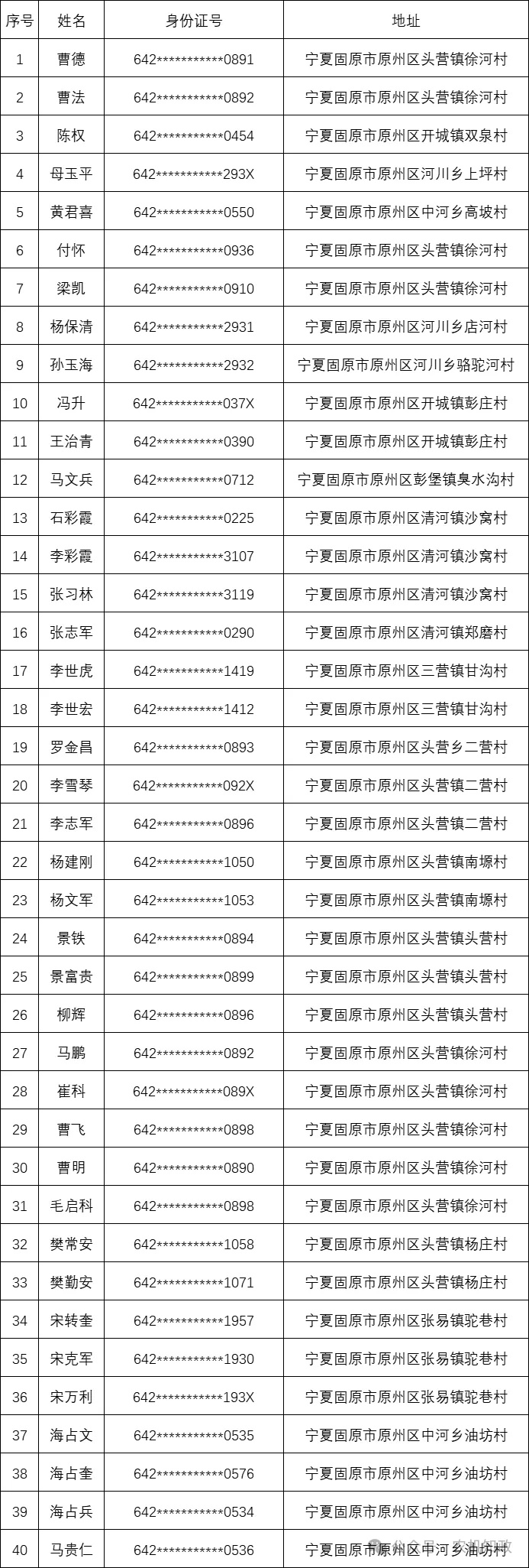 根据《农业机械购置补贴产品违规经营行为处理办法(试行)》(农办财〔2017〕26号)、《农业农村部办公厅 财政部办公厅关于进一步加强农机购置补贴政策监管强化纪律约束的通知》(农办机〔2019〕6号)及《宁夏回族自治区农业机械购置补贴产品违规经营行为处理细则(试行)》(宁农(机)发〔2022〕3号)等相关规定。经研究,决定将参与实施骗套补贴的曹德等40人列入农机购置与应用补贴办理服务系统黑名单,3年内不得享受农机购置与应用补贴(名单见附件)。