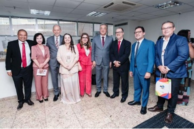 图2 前排嘉宾:祝青桥大使(左5),卢西亚娜·桑托斯部长(左6),奥利瓦尔·弗雷主席(左4),伊纳西奥·阿鲁达副部长(左8),佩德罗·埃斯特旺·巴斯托斯·德·奥利维拉主席(右3),卡洛斯·加巴斯执行秘书长(左7),戴维德·索萨·桑托斯总协调员(右1),索尼娅·达·科斯塔总协调员(右2),杨敏丽教授(左9),若泽·埃塔姆·德·卢塞纳·巴博萨所长(左3),陈超主任(右5),王辉副总经理(右4)