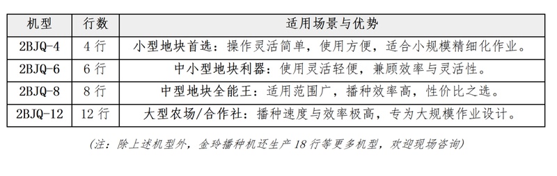规模全覆盖:从4行到18行,金玲播种机全线生产,无论是小型地块还是大型农场,总有适合您的机型。