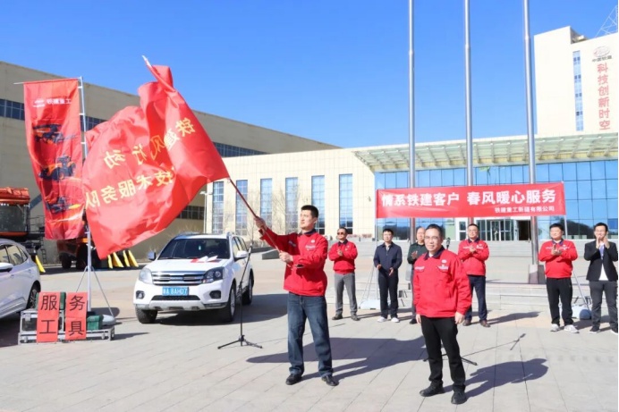 出征仪式上,铁建重工新疆公司领导向技术服务团队授旗,激励团队以匠心守护产品品质,以专业高效响应客户需求,用贴心服务树立品牌形象。